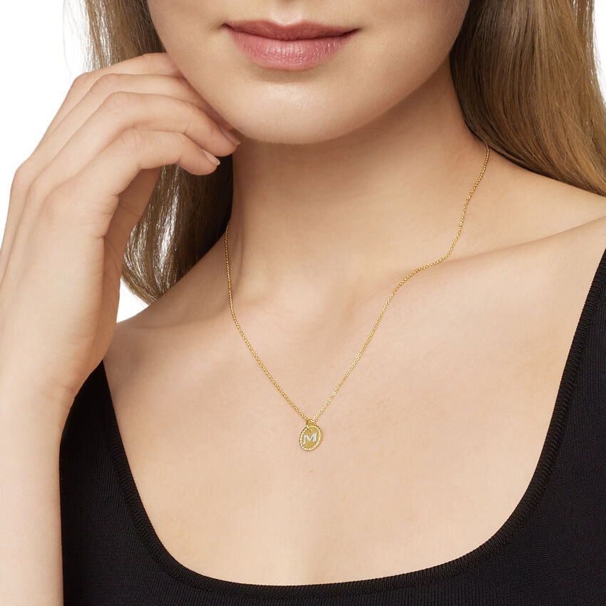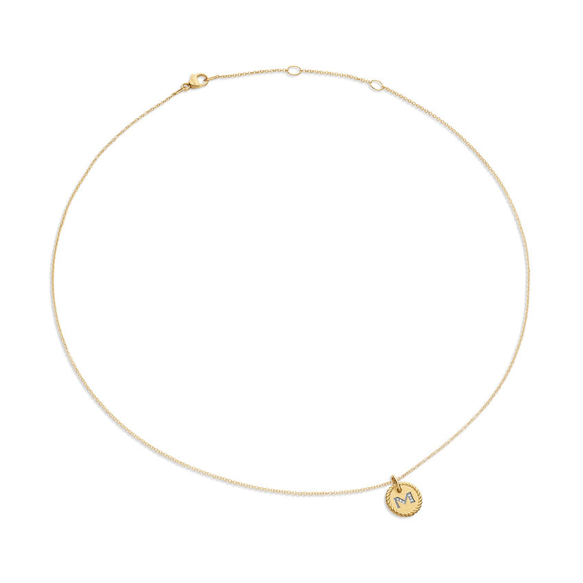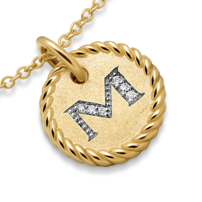Initial Charm Necklace in 18K Yellow Gold with Diamond M